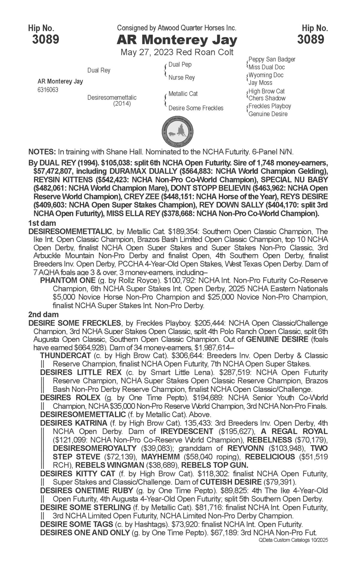 Sale: Hip 3089, 2025 NCHA Futurity Sales, Tuesday, December 2, Watt Arena, Will Rogers Equestrian Center, Fort Worth, Texas