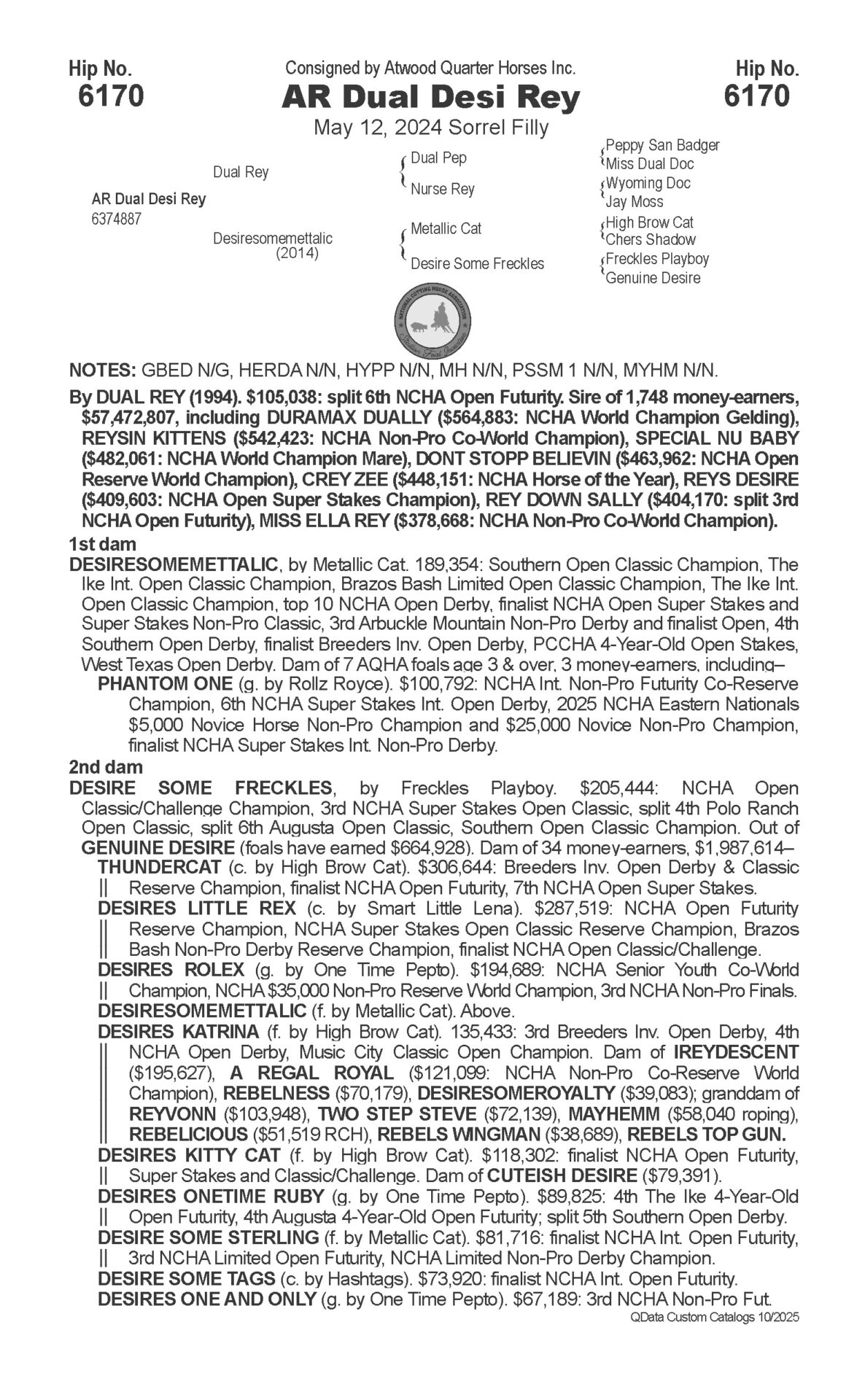 Sale: Hip 6170, 2025 NCHA Futurity Sales, Thursday, December 4, Watt Arena, Will Rogers Equestrian Center, Fort Worth, Texas